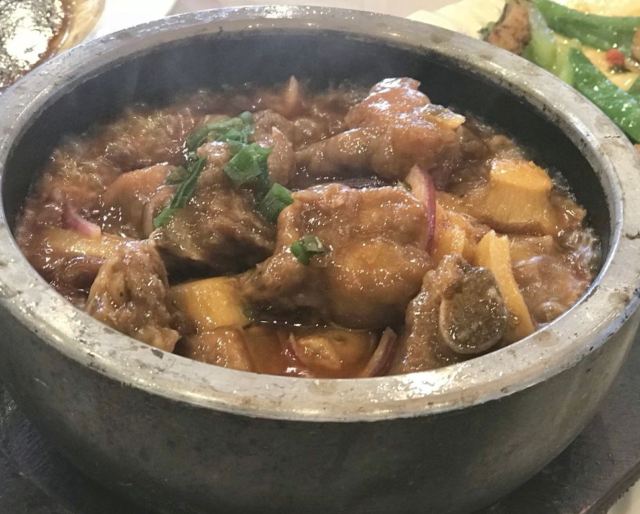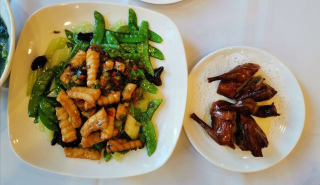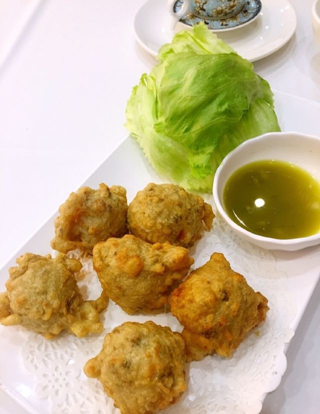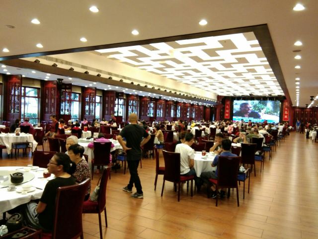 经典粤菜推荐饭店。 人超级多,停车场晚了没地方停。 鮓鱼球弹牙入味,地方经典,每年还有这个菜的大比赛。乳鸽肉质肥厚,很香,叉烧又脆又香。蒸鱼新鲜,有藤椒,口味独特。杏仁片面包酥脆香甜。 装修古朴,服务贴心。
