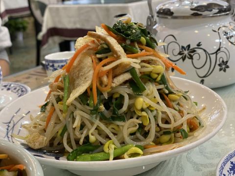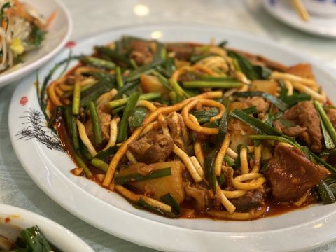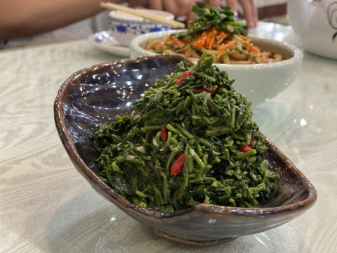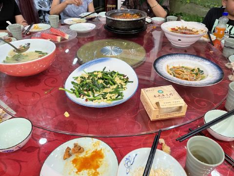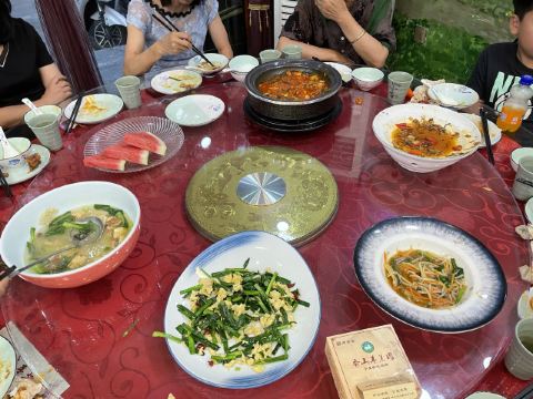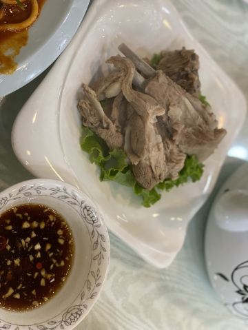 有两家一样店名的挨在一起,选了一家装修看上去比较有年代感的,也不确定他们是不是一家,但结果证明选的那家真的很好吃。推荐枸杞苗,其貌不扬,但是很爽口,酸酸甜甜,本来还以为是马兰头的那种味道,结果完全不是。那个汤一样的建议不要点,一般般,其他的都很好吃,尤其那个招牌的羊肉,必点!