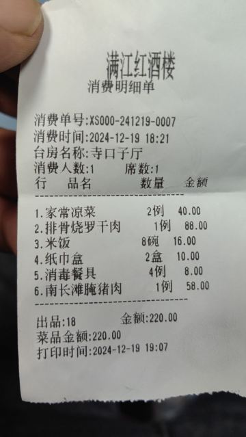 旅游度假差评,昨天四个人点了四道菜,一个小时上来两道,等不急就把后面的退了,结账的时候给我算了八碗米饭,两个凉菜,四个餐具,两盒抽纸, 注:结完帐炒好了一道菜排骨烧螺杆肉,螺杆肉有一股难闻的味道,而且肉已经变色!