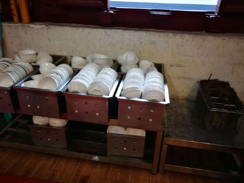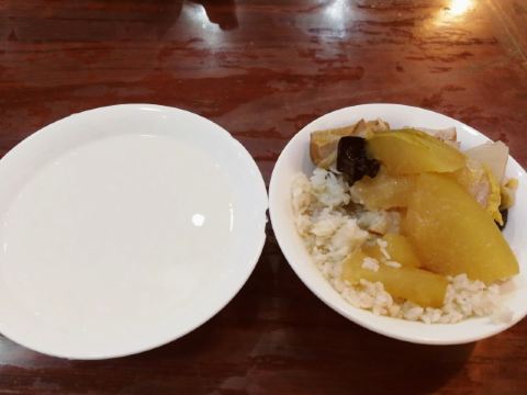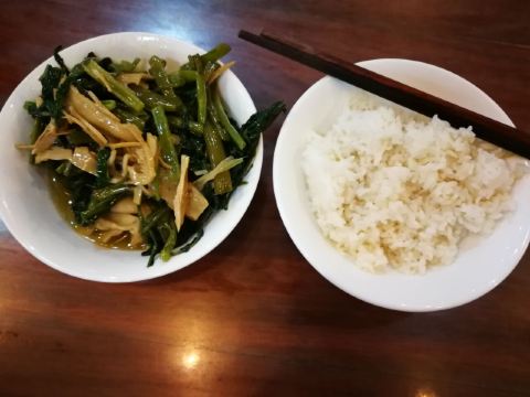 在法雨寺第二层,去之前先在一楼买好餐券,5元一位,然后再上去,不然就要白跑一趟了。午饭是10点半开始,有两个菜,还有白饭和稀饭。素菜的话冬瓜比较好吃,比较入味,总体来说种类也偏少没有汤,吃完要记得自己收拾碗筷去洗。