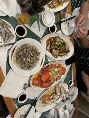 环境服务都很好,海鲜也很新鲜,就是价格属实有点高,一家四口两大两小,吃了波龙、梭子蟹、花螺、带鱼、蛏子,一瓶椰奶,三瓶百威,结账接近900块,放在苏南吃鲜活的这个价格够吃翻倍的了。