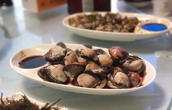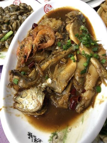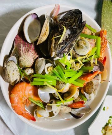 葱油海瓜子,葱油梭子蟹,葱油蛏子,水煮海对虾,酱爆章鱼,爆炒花蛤,海鲜,椒盐皮皮虾,虾,黑蒜烤生蚝,炼奶馒头,椒盐富贵虾,基围虾,清蒸梭子蟹,酱爆大海螺,葱油石斑鱼,花生,舟山带鱼,梭子蟹,石斑鱼