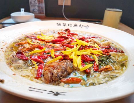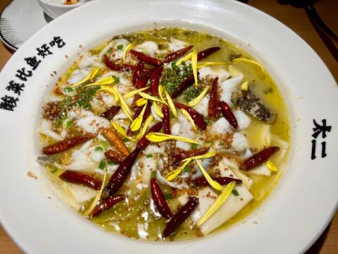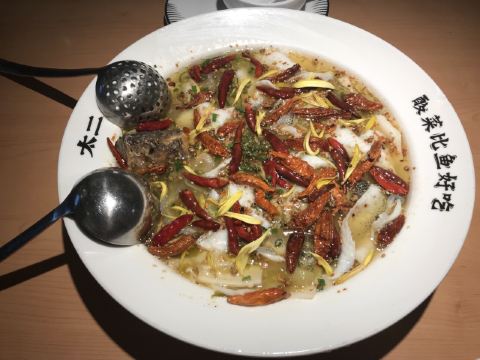 被很多朋友推薦的一家酸菜魚 的確是“酸菜比魚好吃” 排隊等了將近一個小時 還好坐下來之後店員小哥很貼心 米其林如果有平民料理評選的話 這個服務絕對能上榜 它家厲害就是只有一款酸菜魚 在外面等位的時候就會被這個香味給吸引 魚肉很鮮很嫩 絕對是我會再回頭的一家
