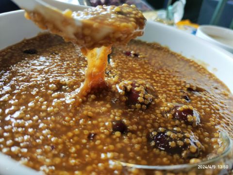 综合口味都很好,炸肉没有任何配料也好吃,博山春卷很鲜嫩,风味茄子是其他地方没有吃过的做法,外酥里嫩很香,豆腐箱子内馅个人口味微咸,外壳豆腐被炸过皮很香,糗糕9.9一汤盆,黏黏糊糊口感很丰富,花生仁红枣小米都很软烂。淄博很好吃,还来。
