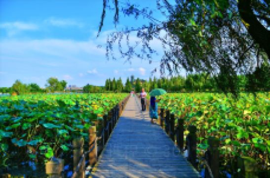 白娘子爱情文化园位于金山湖风景区,坐落中市区西北部。原来这里是金山周边淤塘,通过退渔还湖,结合镇江水专项的治理,进行金山水环境生态修复,造就而成新的景区。文化园区占地108公顷,水面积68公顷。划分为湖西、湖中、湖东、湖北四个景域。桃红柳绿的湖中白岛、许堤、连岛桥梁,将湖西、湖东景观联系起来,形成景观蕴文,文化聚魂的情缘文化游览区。塑造再现谢恩慕爱、灵丹普济、忠贞爱情的白娘子与许仙的爱情故事。