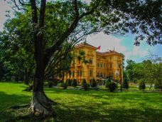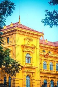 河内主席府位于巴亭广场附近,离胡志明墓不远,其主体建筑是一栋气派的黄色三层大楼,目前主要用于举行越南政府会议。这栋纯粹欧洲风格的建筑有着铁艺大门、古典列柱及壮观的楼梯,还有一个庄严的明镜大厅,许多重大的历史事件就发生在这里。不过,主席府的主体建筑内部是不向公众开放的,你只能从远处拍拍照片。这里还有一处胡志明故居,其实当年胡志明并没有住进这里,只是在那里接见外宾。越南统一后,此棚屋便以胡志明故居的名义列作遗址并加以维护。沿着主席府花园中的林荫道走就可以看到一座两层全木制的吊脚楼,里面陈列着胡志明生前使用过的各种物品。吊脚楼的下层是会客室,摆放着会议桌椅,除了立柱外没有墙,夏天可以避暑。上层有两个房间,左间是卧室,有一张普通的木床;右间是办公室,只有一张木桌和几把木椅。参观下来,你会真切感受到这个故居同其主人一样,简朴而雅致高洁。此外,主席府的花园幽静典雅,是散步的好去处。花园里种植着有趣而罕见的菩萨树,其根部会往上长,形成独特的形状,像是天然的雕像。