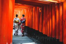 伏见稻荷大社是位于京都南边的一座神社,香客众多。这里较为出名的要数神社主殿后面密集的朱红色“千本鸟居”,是京都代表性景观之一,也曾出现在电影《艺伎回忆录》中。