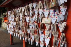 在主殿旁的洗手处按照步骤指示图净手净心,然后到主殿去拍拍手、祈个愿吧,祈愿的主题尽量是和财运及商业有关的。可以求个签,也可以买个绘马(祈愿牌)来写祝福的话。狐狸脸形的绘马是这里的一个特色,给小狐狸画上表情很有意思,而狐狸造型的御守也是人气十足的手信;还有迷你鸟居造型的绘马,同样非常可爱。