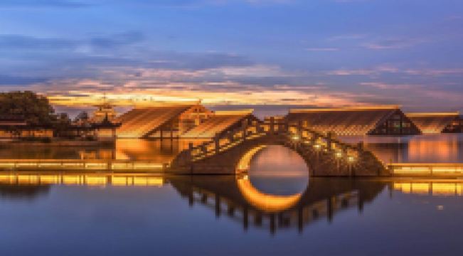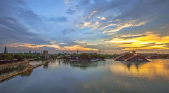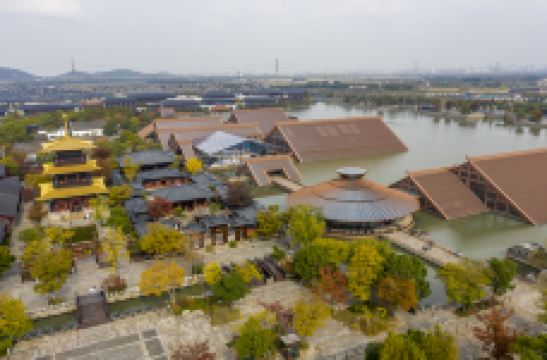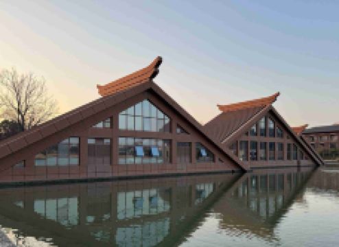 走进遗址,令人流连忘返的就是广富林文化展示馆。整个展览空间设置在水下,一座座仿佛金字塔般的屋顶漂浮在富林湖中,与周围环境融合,勾勒出美丽的画卷。展厅以“时空之旅”为理念,结合现代视听技术,设计广富林考古记忆、上海成陆演变、先民活动到来、城邑特征形成、松江县府兴盛、上海城市崛起、走向未来明天等场景,让游客在时光隧道中体验和阅读上海这座城市的文明历史。
