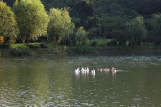 在苏州城西,北倚天池山脉,东邻木渎古镇,有一个名叫藏书的文化名镇,它风景秀丽,人文荟萃,历来就有“石刻之乡、美食之乡、花木之乡”的美誉。其中镶嵌着一块苏州少有的生态绿肺——白象湾快乐生态园,园内群山叠翠,碧水环绕,一年四季,风光各现:春有百花袭人香,夏有鸣蝉闹溪欢,秋有圆月映湖心,冬有白雪铺林静。
