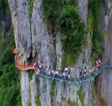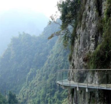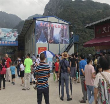 继续往上几百米,走到天门洞就是天门山了,附近的观音洞可以求签祈福,山顶有小卖部可补给些水和小食。休息一会儿后,可游览周边的天然石龙、天门峡谷、神仙下棋等景点,而后开始下山。半山处的地下河是天然形成的大隧洞,里面千姿百态的石乳有的像观音,有的像弥勒,出神入化。继续往下大约1公里,万石飞瀑是压轴,水流从洞中冲泻而下,下面的听音潭深达10米,游人可走到水边的栈道上近观。