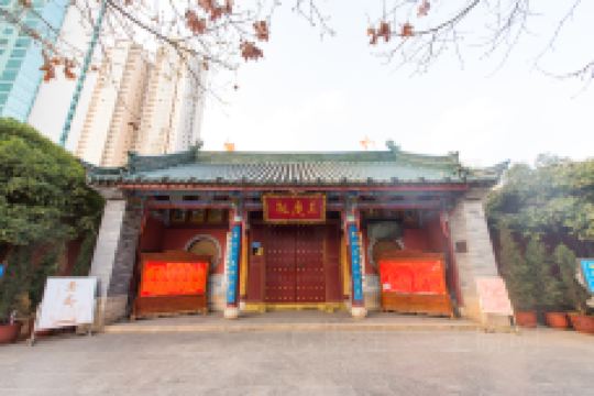真庆观始建于元代,原名“真武祠”。明宣德六年(公元1431年)重建,更名“真庆观”,明正统九年(公元1444年)增建了真庆观前殿及东西回廊,清乾隆五十四年(公元1789年)重修。真庆观建筑群是现存昆明市区占地面积大,保存明清两代建筑较多,较完整的古建筑群。对云南的建筑史、艺术史、宗教史及云南与中原文化交流史的研究具有重要价值。真庆观由前殿、紫微殿、老君殿等建筑物组成。三殿均坐北朝南,由南至北建在同一轴线上。中轴线两侧是前殿与紫微殿连接的东西回廊。紫微殿为面阔三间的土木结构建筑,单檐歇山顶,占地面积320平方米,整个建筑保留了明代建筑风格,殿中供奉紫微大帝(紫微即太阳之意)。紫微殿后面是老君殿(两侧建有相对称的东、西厢房),因历史上多次修葺,现仍保留着元代建筑风格,殿中供奉太上老君。太上老君即老子,姓李名耳,一说即老聃,春秋时期思想家,道家学派创始人。