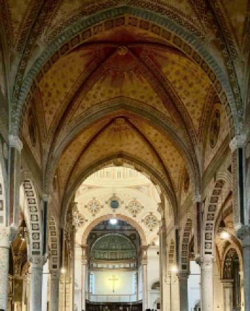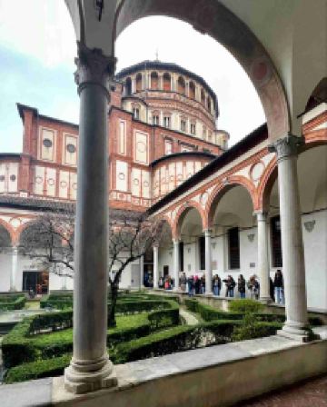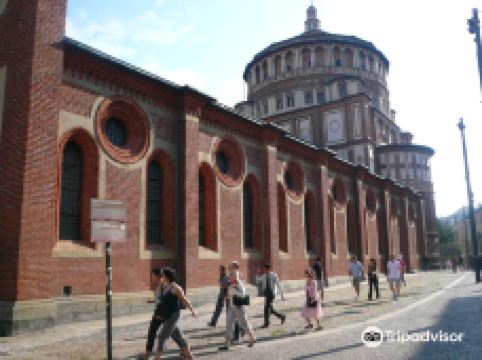 恩宠圣母位于米兰西部,斯福尔扎城堡的南侧。这座红色的天主教建筑由教堂和多明我会修道院组成,因修道院食堂中莱昂纳多·达·芬奇所作的壁画《最后的晚餐》而闻名于世,1980年列为联合国世界文化遗产。最后的晚餐《最后的晚餐》由达·芬奇创作于15世纪,采用了创新大胆的油画与蛋彩画相结合的绘画技巧,创造了独特的透视效果,但也很容易遭到侵蚀。1943年8月15日,教堂和会院遭到英美飞机轰炸,会院食堂大部分被毁,但《最后的晚餐》所在的那面墙却得以幸存。几个世纪后,这幅画80%的色彩已经消退,修缮工作始于1977年,一直延续了22年。目前对参观人数有极其严格的控制,每次参观人数不能超过30人。教堂建筑除《最后的晚餐》之外,建筑本身也值得一看。教堂在斯福尔采斯科公爵主持下修建,于1490年最终完工,一度作为斯福尔采斯科家族的墓室使用。之后法军入侵时,教堂内的文物珍宝被洗劫一空,但精美的穹顶和壁画还是保存了下来,圣器室现在作为多米尼加文化中心,经常举办一些沙龙、艺术展览。