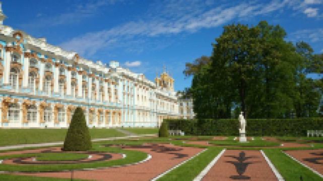 叶卡捷琳娜宫又称凯瑟琳宫,位于圣彼得堡以南约25公里处,是1717年特别为彼得一世的妻子、也是其女儿伊丽莎白女皇、叶卡捷琳娜二世、亚历山大一世及尼古拉二世喜爱的郊外行宫。