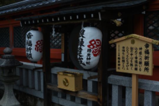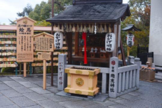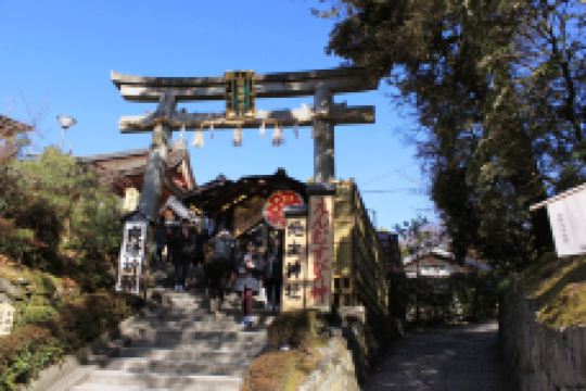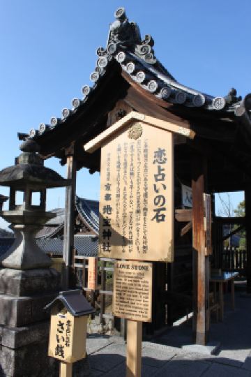 地主神社,主祭神是大国主,是日本有名的结缘、祈求恋爱运的神社。位于清水寺的清水之舞台左边,到江户时代为止是清水寺之镇守社。1994年,作为清水寺的一部分登录为世界文化遗产“古都京都的文化财”。地主神社前有两块相距十来米的石头,据说蒙上双眼从一头走到另一头去摸对面的石头,就能得到真爱。难度有点大,所以很多人会自己闭着眼睛让同伴引导着自己去摸石头。