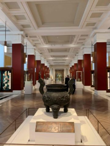 大英博物馆是收藏中国流失文物极多的一个博物馆,藏有25000余件,长期展览的约2000件,布展经过精心设计,按商周的青铜器以朝代脉络梳理,陈列着从商周、秦汉到民国的文物;瓷器的几大名窑按汝、哥、钧、定、官分为不同策展,专业有序。推荐观赏文物还有大型唐三彩、宋磁州窑“马戏枕"、元青花鱼藻纹大盘、明宣德景泰蓝和敦煌壁画佛像等。