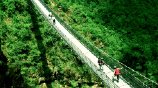 牛头山国家森林公园在武义城外60公里的地方,这个号称“江南小九寨”的地方以峭壁、溪流和碧潭见长,也算有几分姿色,不过和九寨沟比起来,还是要逊色那么一点儿。由于公共交通不便,来到牛头山的大多是自驾的游客,游人总不算太多。从大门的到核心景区大概有5公里车程,游人可自驾至山下的停车场,景区每天也有3班免费接驳车往返景区大门。停车场旁边有餐厅和山里人家酒店,靠近大门处的温泉酒店条件更好,可以泡温泉,时间充裕可考虑留宿一晚。停车场往左是通往后山望牛峰的游览道,如果是下午抵达又打算留宿,可考虑去后山走走,晚上泡个温泉,第二天再往右去到石门峡入口,爬天师峰、看牛头山国家森林公园-天师殿、走金锁桥,也是景区主要看点。由石门峡入口过浴仙湖,到牛头山国家森林公园-七夕桥这段基本是条直路,沿路有清亮的潭水和溪流相伴,走起来还算轻松。过牛头山国家森林公园-七夕桥是一处岔口,左右均是通往天师峰顶和牛头山国家森林公园-天师殿的上山路,一边上山,另一边下山即可。往左是经典惊险的游览栈道,栈道尽头是金锁桥,继续往上走过牛头山国家森林公园-一线天便能到达山顶和牛头山国家森林公园-天师殿了。游览栈道本身是悬在半山腰的崖壁上的,远远就能看到跨在两山崖之间长长的金锁桥和对面的天师峰,有几分大气磅礴的气势,也是拍照的美妙角度。金锁桥虽然看起来惊险,但当你走在上面便能发现其实桥还是很稳很结实的,不必太过紧张。后面的牛头山国家森林公园-一线天也很是陡峭,不过当你爬到山顶,眼前豁然开朗的景色会让人觉得之前的辛苦都是值得的。山上的牛头山国家森林公园-天师殿可以祈福,不过可能需要另付费。上山大约需要2小时,走起来有些累,不过下山路更平坦点,一个多小时便能回到山下的牛头山国家森林公园-七夕桥。山上有几处厕所,但几乎没有卖东西的小店,爬山需要自备些水和干粮。靠近景区大门的牛头山神牛谷漂流(128元/人,供参考)峡深湍急,全程约3公里,算得上夏日里好玩清凉又刺激的活动项目。不过,漂流一般下午1点左右开始,建议上午爬山,下午玩漂流。