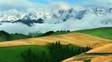 天山麦海:是江布拉克壮观奇景之一。千百年来,她醉卧江布拉克,美得让人心动。她地处天山山脉,平均海拔1700米的前山和丘陵地带,与雪山交相辉映。