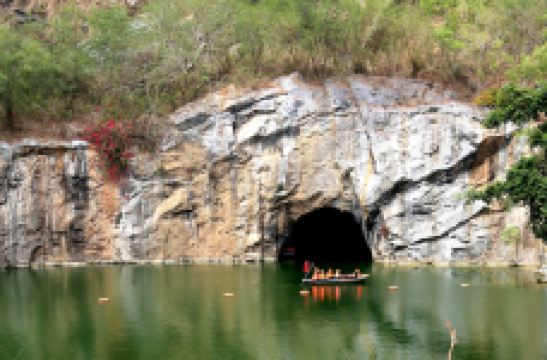 石花水洞是儋州罕见的天然溶洞,距今已有约140万年,洞内有着形态各异的钟乳石,很为特别的当属这里的洞内石壁上布满了奇特的石花,它们细小而又茂密,如一簇簇盛开的花朵。洞内还有着一条暗河,可以乘船游览。