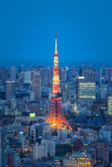 东京塔,也叫东京铁塔,是东京观光人气景点,红白色相间的铁塔以巴黎埃菲尔铁塔为范本而建造,高达333米。1958年竣工后一直是东京的城市标志之一,它的形象和名字也频繁出现在各种艺术作品中。