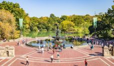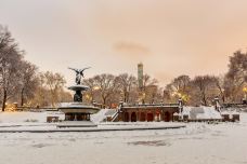 纽约中央公园中的毕士达喷泉位于湖泊与林荫之间,它是中央公园的核心地标,从72街进入可以快速抵达。喷泉建于1873年,喷泉中的雕塑有一个很好听的名字——水中天使(The Angel of Water),而围在喷泉旁的四座雕像分别代表“节制”、“纯净”、“健康”与“和平”。这座水池常常有成群天鹅悠游其间,也有不少游客在喷泉后面的湖中划船。这里是纽约人休闲之地,你除了在喷泉广场上休息之外,还能经常看到拍婚纱照的新人们。在喷泉对面的桥洞里面还经常有艺术家的表演,观看完要记得给小费哦。