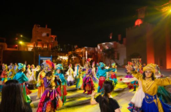 唤醒一场沉睡千年的梦,和田约特干故城携手国内知名文旅演艺团队北京舞维视界,打造新疆首 个全域行浸式超感演艺《万方乐奏有于阗》,带来“一城两风情,一街一特色”的旅游新体验,白天“十方百戏”,夜晚“故城故事”,为你生动讲述千年古于阗荡气回肠的历史长歌。