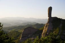 磬锤峰孤立于平缓的山峦之上,犹柱擎天,那上部略粗下部略细的自然造型很容易开启人的想象力,说它可与纳米比亚的“上帝的拇指”相媲美,那些不会生育的妇女踩着虔诚的步履,就为了到峰顶摸一摸它,感觉一下它的阳刚气息。