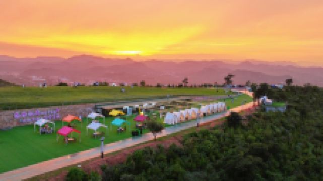 紫微山庄:山脚下,绿树掩映中,青瓦白墙,一个幽静的四合院,这就是紫微山庄。这里是一处广场和饭店,美味十足。饭菜都是从农家菜园里就地采摘就地加工,新鲜原味,绿色生态无污染,独具特色。天井院中,葡萄架下,沏上一杯香茶,饮上两杯啤酒,简直神仙一样的日子。