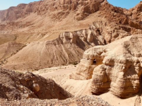 位于死海西北端的死海一侧。1947年几个贝都因的牧羊人,在死海西北端的昆木兰(Qumran”)附近的山洞中偶然发现、后来被称作《死海古卷》的“文献”手稿,他们把这些不知名的东西带到耶路撒冷的集市上买卖,后被人发现并引起空前轰动。广义上的死海古卷,包括在死海沿岸陆续发现的古洞中所发掘出的文卷。狭义上的死海古卷,就是我们通常所指的,在死海西北沿岸,昆兰“Qumran”(也称:昆木兰)地区的一条干涸的河岸旁11个山洞中所发现的古卷。死海古卷大多数是皮革,纸草,甚至是金属片写成。大多数古卷都是残破不全,约有五百多卷;其中一百卷是圣经抄本,除了《以斯帖记》外,全部的希伯来文圣经都有。除此之外,就是圣经注释、次经(Apocrypha)、伪经、论礼仪的、历法的、生活守则,以及启示文学等。圣经抄本对我们的意义极为重大,它比马所拉抄本(Masoretic text)还早一千年,为人类提供了希伯来文圣经宝贵的历史资料。