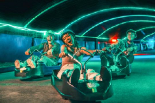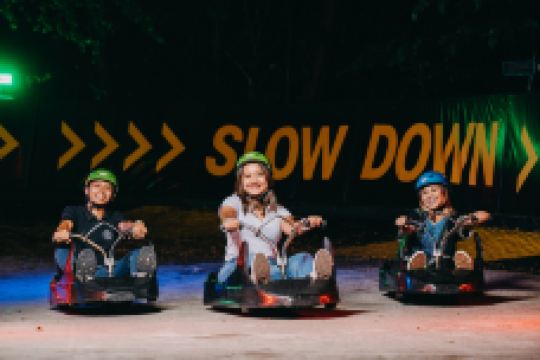 在这里,你不仅可以从英比奥山顶坐上滑车,从12层楼的高度沿着650米的蜿蜒跑道往下滑冲,享受乘风滑行的舒畅快意,还可以在滑行抵山脚之后,搭乘4人座的空中吊椅返回起点,欣赏圣淘沙岛和新加坡城市天际线。滑车上装有独特刹车器,方便游客抓稳驾驶杆、控制速度,保证滑行全程安全无虑。