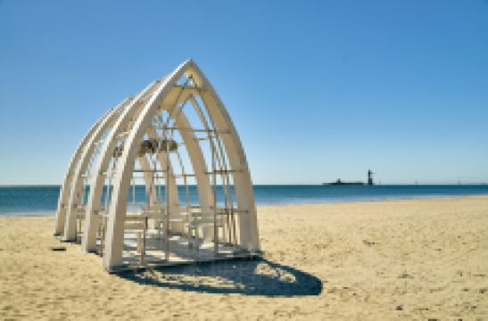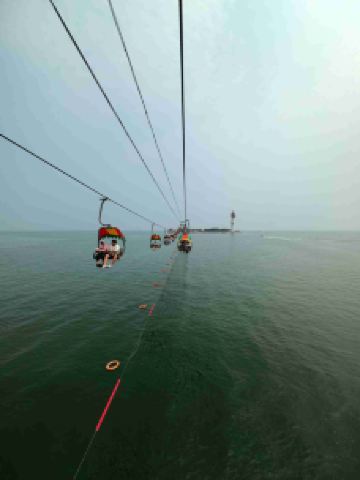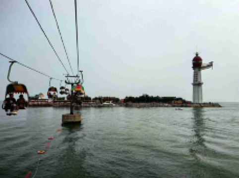 南戴河仙螺岛依托蓝天碧海的自然优势,缘引美丽动人的海螺仙子的传说建成的,是一个涵盖娱乐、观光、健身、休闲、餐饮等诸多功能的综合性海上游乐场所,被称为“海上童话”。该岛依民间传说,海螺仙子与渔民小伙海娃喜结良缘的爱情故事构思创意,仿神话故事造型制景,古朴典雅颇颇具韵味,不啻海中瑶池,涛中乐园。有幸登游此岛,领略海中观海之乐趣,实乃人生一大快事。岛上海螺仙子、三道关、七星石、石猴观海、风车群、巨龙出海等景点,无不充满神奇色彩。岛中之仙螺阁与岸边之聚仙阁相映成趣,游人登阁远眺,顿觉海阔天低、心旷神怡,波光、帆影、白云、鸥群尽陈眼底。两阁之间,一条千米海上索道,有如经天长虹,将其紧紧联为一体,始令“天堑”变通途。岛西侧,一座约七十米高的观光塔气势雄浑,冲天而起。以其为载体,设有蹦极、跳伞、漂流、观光等海上游乐项目,新颖、刺激,有惊无险。岛西南处,经人工围埝填沙,筑成七千平方米海中浴场,供勇敢者尽情嬉戏弄潮。沙岸与海岛之间专设海上缆车,为双向索道,将陆地与海岛有机地连为一体,号称千米索道,是游人登岛观光的主要交通工具。索道上配置双人半封闭式缆车百余部,从起点聚仙阁到岛上仙螺阁,历时约15分钟,运行平稳。 游客靠坐于缆车上,极目远眺,近处的南戴河与远处的北戴河一衣带水,绿树掩红墙,碧水拥金沙,海鸥涛尖舞,海风怡人拂面来,给人带来无穷惬意与遐想。