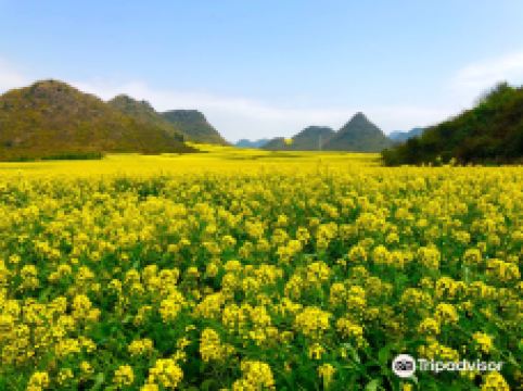 金鸡峰丛位于罗平县城东北,每年花期的时候,满山遍野的油菜花扑面而来,无不令人醉心。金鸡岭作为一个小村庄,它的乡土气息可以让久在城市的人们放松心情。金鸡峰丛是一个欣赏油菜花和享受田园风光的好地方。 游客可以漫步在油菜花海中,感受这金黄的世界,若是专业的摄影爱好者,则可以登上花海观景台,那里可以拍摄到整片的油菜花海,非常壮观。