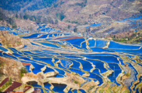 坝达景区又叫麻栗寨景区,位于县城南部43公里,新街东部15公里。主要景点:全福庄梯田、坝达梯田、麻栗寨梯田、上马点梯田、村落。主要内容和特色:以哈尼族风情、人文、自然景观为主。全景区共有17个自然村,1910户,10244人,8737亩梯田全为哈尼族。是观赏哈尼族梯田、云海、哈尼族建筑等风光的地方,也是了解、研究、体验哈尼族文化的中心地带。坝达景区梯田面积大、壮观、线条美、立体感强。从海拔1100米的麻栗寨河起,连绵不断的成千上万层梯田,直伸延至海拔2000米的高山之巅,把麻栗寨、坝达、上马点、全福庄等哈尼村寨高高托入云海中。站在麻栗寨茶厂观梯田,近万亩的梯田宛如一片坡海,泛着粼粼波光,奔来眼底,景色十分壮观,每当下午四时后,白茫茫的坡海随着夕阳西下,逐渐变成粉红色、红色。再转变成粉红色、白色。是观赏和拍摄梯田随时光变化而变化的地方。坝达梯田面东靠西,是一个落日景点,也就是说,它的佳观赏时间是在每天傍晚,夕阳西下、满天红霞的时候,有摄影家称它是夕阳晚照,是观赏日落、哈尼梯田、云海及村寨等风光的景点之一。