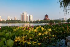 南池景区是以历史文化为主题的古典园林公园,突出“以绿为题、以水为魂、以文为胜、以人为本”,荟萃了运河文化、李杜文化、王母文化,包含了王母阁、少陵祠、古南池牌坊、晚凉亭、南池荷净牌坊、碑廊、九龙叠水、乔羽艺术馆、古南池桥、爱情博物馆等景观。其中,北部景区为历史文化景区,主要景点有王母阁、晚凉亭、杜甫茶舍、诗碑、牌坊、少陵祠等,通过建筑、小品、植物景观来追忆南池胜景。南部景区为生态旅游景区,有树木园区、花卉园区等,形成“群芳探幽”的迷人景色。 “南池”就是指“王母阁”,原名“古南池”,建于唐代开元、天宝年间(公元713——756年),面积400余亩,位于现在济宁市城南王母阁路西侧。据《济宁直隶州志》记载:“王母阁在南关外,周围皆水,一阜屹然中立……,取西望瑶池,东降王母之意,遂以名阁。”《济宁县志》记载:“古南池在城南三里许小南门外,小南门即故城也。地周二三里许,内有王母阁,阁西南水中有晚凉亭,夏日荷花盛开时,清香袭人,而白莲尤胜,每有游人宴宴于是。旧有杜文公祠,祀李白、杜甫、贺知章三人。后从州人李毓恒议,并祀许主簿。”由此可见,在盛唐时期,这里是济宁州一游览胜地,特别是到了夏天,满池白莲荷花,阵阵清香,空气新鲜,天地纯净,令人心旷神怡。“南池荷净”这一景观就是来源于此。明、清时代的南池又进行了大规模修建,不仅风景宜人,而且楼阁耸起,曲槛回廊,花木昌茂,松竹交翠。池中有四岛,即王母阁岛、北坛岛、南坛岛、池心岛。岛上建有王母阁、玉皇庙,还有濯缨亭、君子亭、观荷亭、观澜亭等。历代诗人、名流多会于此,吟诗题赋。唐代大诗人杜甫开元二十五年(公元737年),同任城许主簿游南池留有著名诗篇。 清朝皇帝康熙、乾隆南巡,驻跸济宁,也到南池游览,康熙御笔题写“王母阁”,乾隆御笔题写了杜甫游南池的诗篇。王母阁建成后,还吸引了无数的善男信女前来烧香拜佛。每年农历三月三蟠桃会,周围百多里的人们前来进香, 南池更是香烟缭绕。灯火辉煌,人山人海,热闹非凡。 1928年,在北伐战火中王母阁不幸被毁。1958年8月,济于市人民政府决定在南池内建设鱼种场,挖池养鱼、植荷、栽蒲。