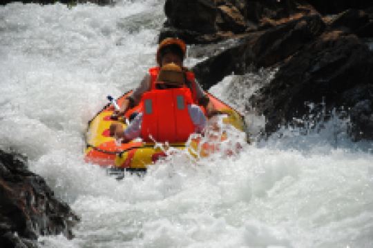 千岛湖鱼跃龙门漂流深藏于千岛湖西北湖区的青山幽谷中,沁人心脾的山泉在这里汇集成溪,激荡成瀑,沿山势奔腾出山。启漂阶段,飞流直下,白练飞溅,宛如珍珠落盆,银河倾泻。继而穿越峡谷,千奇百折,有惊无险。时而深涧腾跃,荡气回肠;时而回水荡漾,情丝缠绵。仰观奇崖千仞,惊叹鬼斧神工。两岸猿声阵阵,一路鸟鸣连连。