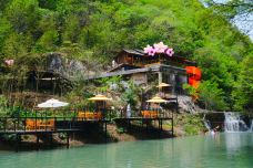 琴溪香谷景区位于桐庐东北部,位于杭州到千岛湖的必经之路上,因此也常被安排在同一游程中。这里有养眼的翠谷飞瀑,夏季溪流凉气逼人,是避暑纳凉的好地方。而秋天桂花开时,整个峡谷都香香的,“香谷”名副其实。景区不大,顺着山涧边蜿蜒的步道逆溪而行,走一个往返便能结束游览,不会太累。进入景区,首先看到的是从翠谷琴湖流淌下来的一个小瀑布,继续往上走便是形若瑶琴状琴湖。走过瀑布边有一座仅够一人通过的“龙门桥”,便是一路鹅卵石路和木板路组合而成的栈道。栈道边琴溪潺潺流淌,还能看到许多桂花树和香樟,漫步其中感觉非常悠闲。无需太久便能走到状元神洞的入口,这个洞穴算得上景区中有意思的地方,洞中格外逼仄,一些地方只能手脚并用地爬过去(身材较魁梧的朋友也可以从洞边的小路绕行)。配合着洞中幽暗的彩灯,有几分探险的感觉。出洞即是一座不太高的吊桥,是通往状元祠堂的必经之路。这座状元堂是唐代留下的,外观后来重修过,看起来比较新。里面虽然不大,但琴溪香谷景区却是因为这里出过“状元郎”施肩吾而出名,来此的游人总要听听这位状元郎带着族人远渡海峡,成为开发澎湖的先驱的故事。至此,景区中的主要景点均已看过,后面的“泉流千秋”是一眼状元泉,继续向前的“藏龙出峡”则是游步道的折返点,再远便是更为幽深的峡谷,不可前往。你可以选择从另一边的小路步行下山,也可以选择坐一段滑索下去,体验一把在丛林中快速俯冲的刺激。汽艇冲浪也挺刺激,不过小朋友需有大人陪同乘坐。滑索和汽艇冲浪价格均为40元左右。