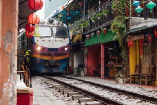 河内火车街是一条独特的街道,因其紧邻铁轨而闻名。位于河内老城区,这里是体验当地生活和文化的热门地点。火车道两旁分布着多家咖啡馆,游客可以在此享用越南特色咖啡,同时感受火车从身边缓缓驶过的独特体验。