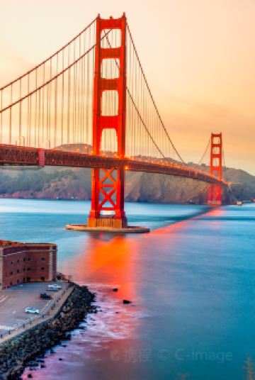 金门大桥是一座悬索桥,被视为旧金山的象征。2.7公里的长度,贯穿了整个旧金山湾和太平洋的金门海峡,更是连接旧金山和北边城市的重要交通枢纽。与此同时,《猩球崛起》、《X战警》等美国电影均在此取景拍摄过。1. 较好的观景点桥身南侧的尖兵堡Fort Point。靠近莎萨利托的观景点Vista Point。大桥北岸靠西的瞭望台Battery Spencer。2. 拍摄建议大桥北侧钢架适合拍摄大桥全景,鲜艳的橙色即便在大雾天也无法抵挡它的风采。大桥南侧由于角度和高度的问题,更加适合拍摄水面与桥身等局部特写。如果时间充裕的话,不妨租上一辆单车一路骑行,感受大桥不一样的美。