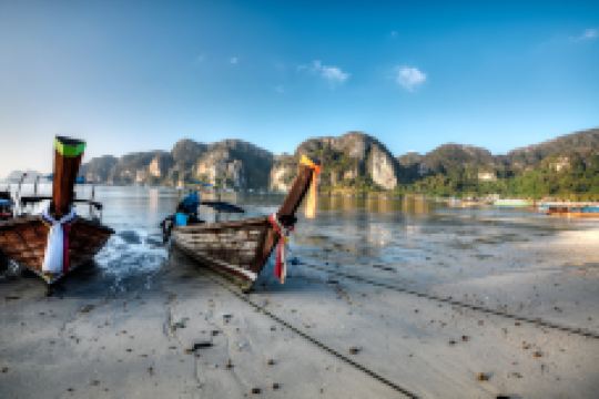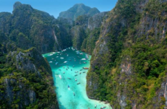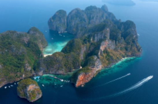 皮皮岛,又称为披披群岛或PP岛,是由北部的大皮皮岛(Phi Phi Don)和南部的小皮皮岛(Phi Phi Lay)及周围4座小岛组成的群岛,1983年被定为泰国国家公园。这是一个深受阳光眷宠的地方,柔软洁白的沙滩,宁静碧蓝的海水,鬼斧神工的天然洞穴,未受污染的自然风貌,使它成为近年来炙手可热的度假胜地之一。热门影片《海滩》中那片梦幻般的碧海晴天就是在小皮皮岛实景拍摄的。随意地坐在海堤边上,漫天的星星覆盖了整片天空,轻柔凉爽的海风迎面拂来,听着阵阵的海浪声,看着月色下的海景,这一切都让你仿佛身处梦境,产生世外桃源般的美好感觉,而这就是皮皮岛的日常。此外,皮皮岛还是一个潜水胜地,在这里,你可以潜入绿宝石色的海水中,观赏珊瑚礁和热带鱼类,探索美妙的海底世界,惬意十足。
