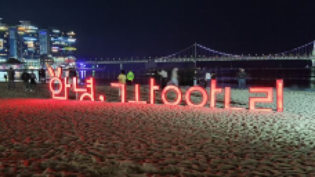 位于釜山的一个海水浴场,白天可以看到广安大桥全景,到了晚上还可以看到广安里大桥夜间灯光秀。