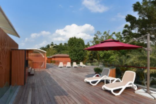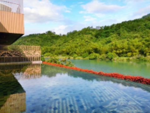 无边际泳池坐落于河畔温泉区,依河而建,提供沉浸式自然体验。从泳池可眺望宁静的流溪河与雄伟的飞阁山。得益于无边际设计,泳池看似无边无际,与河流完美融为一体。