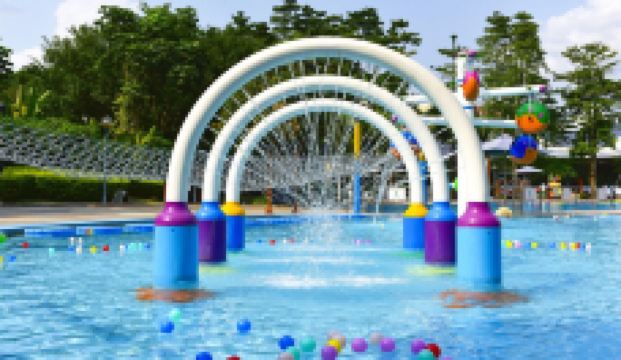 水上乐园是另一处热门景点,尤其深受小朋友喜爱。儿童嬉水池水深约60厘米,确保安全。池内设有水滑梯、层叠瀑布及漂浮荷叶等设施,专为小朋友玩乐及活动而设计。