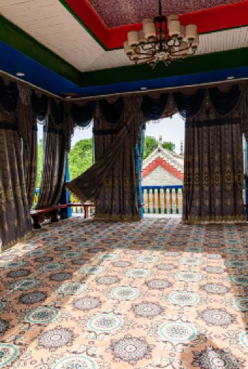 库车王府位于新疆阿克苏地区库车县老城区内,是从1759年起库车当地的维吾尔亲王库车王世代居住的地方。曾经的库车王府已经变为废墟,如今的王府是在原址基础上,按照后一代库车王达吾提·买合苏提的回忆原样复原的。库车王府面积很大,横竖都有两三百米左右,里面有多座建筑,建筑多为维吾尔风格,内部色彩鲜艳,可以随处拍拍照片,院子里还有花园、绿地,环境十分不错。王府参观分为龟兹文化展览区、王府参观区和老城墙三处,进入后步行参观即可,一般2小时左右为宜。