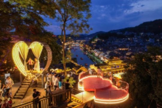 由于位于南华山森林公园内,南华山神凤文化景区被郁郁葱葱的森林所覆盖,满目苍翠,空气清新。文化景区的门票包含在凤凰古城通票内。景区距离古城著名景点——虹桥风雨楼约3公里,有兴趣的游客可以从古城步行前往,也可以打车到达景区。在文化景区内的凤凰台上,可以俯瞰凤凰古城,沱江跳岩、虹桥风雨楼、万名塔等著名景点都在眼前。