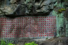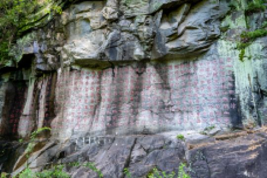 山谷流泉文化园位于安徽省潜山县天柱山镇风景村境内,现存唐(公元618年-907年)以及(公元1912年-1949年)历代石刻400余方,以宋代(公元960年-1279年)石刻多。石刻密布崖壁盘石及溪谷河床。题刻作者达数百余人,可查考者不下百人,唐代李德修,宋朝王安石、黄庭坚、苏东坡,明朝胡缵宗,清代张楷等名宦大家都曾题字崖谷。题刻内容广涉天文、地理、政治、经济、军事、文化各个方面;文体多样,有诗词、歌赋、纪事、题名;书体有真、草、隶、行、篆。山谷流泉中的3处年代早的石刻都是唐代的,它们均分布在石牛古洞东壁悬崖上。其中2处是唐代散文家,哲学家李翱任舒州刺史时游览山谷的题名。山谷流泉有两宋题刻100多处,内容也极为丰富。这里不仅有安徽现存北宋早的一块端拱二年(989年)赵孚、舒雅、黄梦锡题名;还有政治家王安石的诗刻,书法家黄庭坚的题名,李师中的记事题刻,南宋张同之的诗刻等等。有宋一代,慕名到山谷流泉来观揽胜的游客一直络绎不绝,形成空前的刻石纪游之风。元代以后,众多游客蜂拥山谷,也留下大量的文字石刻。从书法的角度看,这里的石刻包括有隶书、楷书、草书、篆书、行书等多种,每种书体中又富于变化,各具特色,基本上代表了唐代以来我国书法艺术发展演变的风貌,是一处珍贵的书法艺术宝库。