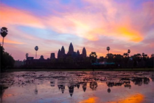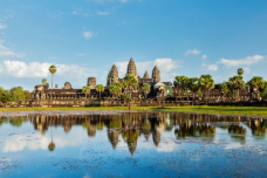 吴哥窟是柬埔寨的一个寺庙群,占地162.6公顷(1,626,000平方米;402英亩)。起初作为高棉帝国供奉毗湿奴神的印度教寺庙建造,12世纪末逐渐转变为佛教寺庙。它由高棉国王苏利亚伐尔摩二世于12世纪初在高棉帝国首都雅绍达拉普勒建造,作为他的国庙及陵墓。打破了前任湿婆教传统,吴哥窟改为供奉毗湿奴。作为该地寺庙,它是自建城以来始终保持重要宗教中心地位的寺庙。它已成为柬埔寨的象征,出现在国旗上,也是该国游客的主要景点。 吴哥窟结合了高棉寺庙建筑的两种基本平面:寺庙山脉和后来的有廊道的寺庙。它被设计成象征印度教神话中天神的故乡梅鲁山:在一条长3.6公里(2.2英里)的护城河和外墙内,有三个长方形的长方形展厅,每个都高高在上。神庙中央矗立着五分五轮塔楼。与大多数吴哥寺庙不同,吴哥窟朝西;学者们对其意义存在分歧。该寺庙因其宏伟与和谐、丰富的浮雕以及装饰墙壁的众多天神而备受赞赏。△ 感受关于吴哥窟的真实故事与神秘传说,每一处都是不错的拍照点。