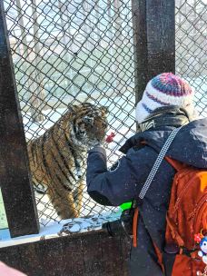 横道河子东北虎林园位于牡丹江海林市横道河子镇,是我国东北地区大的东北虎繁育、山林散养基地,有着“中国虎乡”之美称。该虎林园坐落在张广才岭山脉佛手山脚下,这里四周群山环绕、林木蓊郁,园内有山、林、溪,与东北虎自然生长的环境非常相似,特别适合东北虎的饲养繁育与野化训练。园内建有猛虎园、幼虎园、科普馆、珍稀动物观赏区、大型动物表演场、二级动物区、熊池、鹿园8个景点。少得用2个小时,才能游完全园。其中猛虎观赏园需乘车观赏,你可坐在车内寻觅老虎踪迹,领略东北虎的雄姿。在步行栈道,还可以观赏东北虎的野化训练以及上树本领,观察研究东北虎的生活习性,并可亲自给老虎喂块肉、投活鸡、放活牛。横道河子东北虎林园的虎源直属哈尔滨虎园,是世界上大的东北虎人工饲养繁育基地。为了保护濒危灭绝的东北虎种源,截止目前,横道河子东北虎林园以建立初期的8只纯种东北虎为基础,成功地使东北虎种群繁育到现在的近一千只。目前在上海、大连、沈阳、山东、长白山等地,均有从横道河子东北虎林园输送的东北虎虎源。