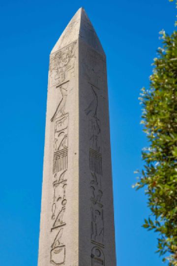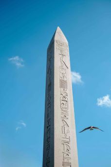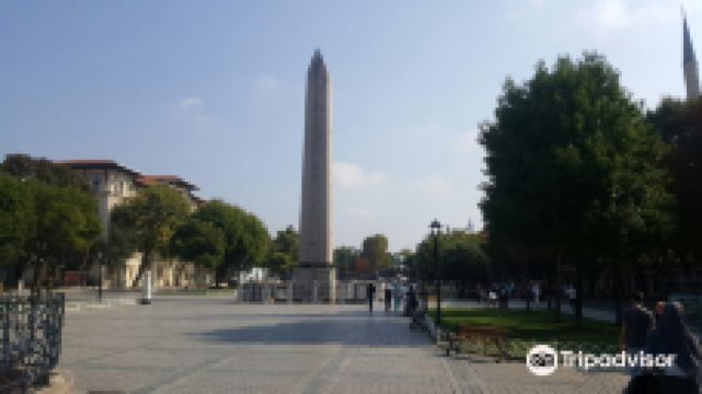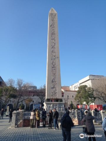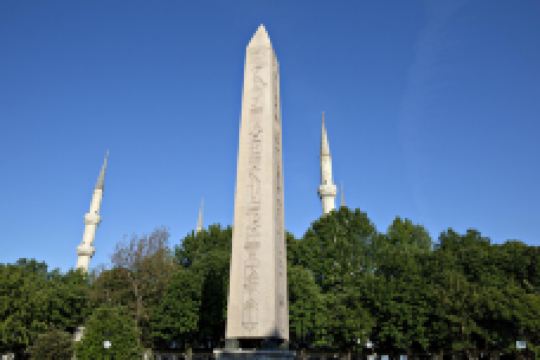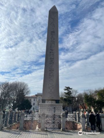 图特摩斯三世方尖碑碑体呈灰色,高18.74米,四面均有象形文字。这座方尖碑原来是埃及法老图特摩斯三世在位时雕凿,竖立在卡尔纳克神庙。公元390年,罗马帝国狄奥多西一世大帝将它运到正在建设的新首都、当时称为君士坦丁堡的伊斯坦布尔,竖立在帝国竞技场的中轴线上。碑石安放在一个高约3米的基座上。基座的底部是白色大理石,四周有浮雕,描绘狄奥多西一世及其家人在御花园中的活动:南面是他和家人在观看赛马,东面是他坐在包厢,准备给赛马获胜者佩戴桂冠,北面是他主持竖碑仪式,西面是他接受降敌的朝贡。基座上还镌刻有希腊文和拉丁文,说明他竖立此碑的因由。有趣的是,拉丁文说竖立此碑只用三十天时间,而希腊文却说是三十二天时间。现在也已经无从考证。