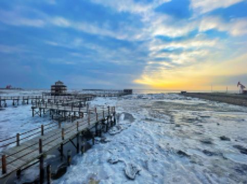 冬天,碱蓬休眠、红滩退去,千里冰凌层峦起伏,万顷海面冰排叠嶂,蔚为雄奇壮观,展示出中国北海岸线冰天雪地的独特魅力。辽河口冰凌以其神奇独特的自然景到了越来越多户外运动爱好者的喜爱。