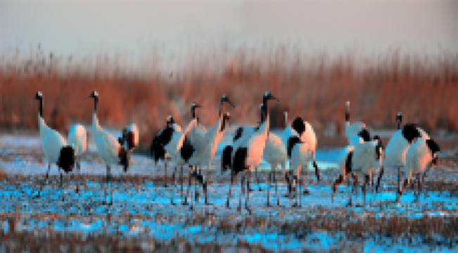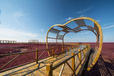 景区内核心湿地原生态保护完好,具有重要意义,被国际湿地公约组织列入湿地名录,先后加入了“东北亚及澳大利亚涉禽迁徙航道保护区网络”和“东北亚鹤类网络”。嫣红似火的碱蓬草和碧波浩渺的芦苇荡,一望无际的稻田,绘就了天海间的大地生态艺术。这是中国十大魅力湿地,更是“湿地仙子”丹顶鹤、“海洋精灵”斑海豹等珍稀生物的家园,讲述着辽河口文化故事和历史传承。